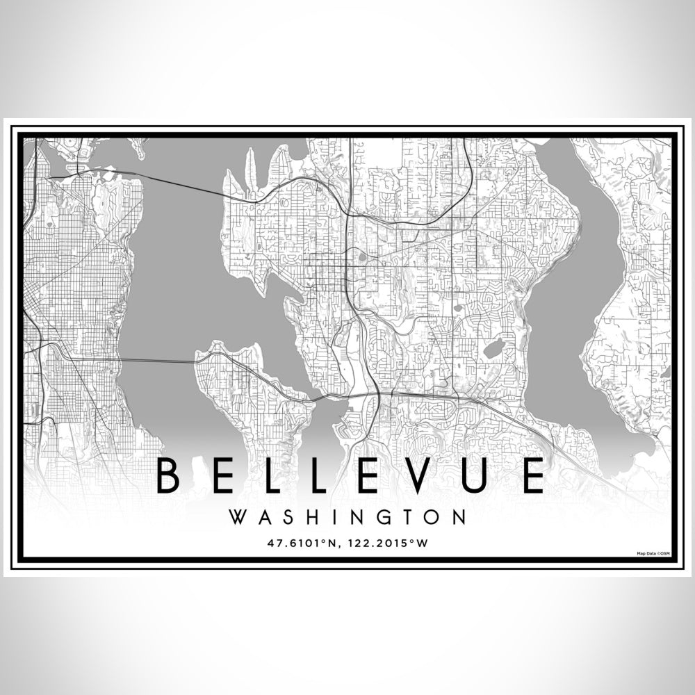 Custom map print of Bellevue, Washington featuring our classic architectural style. Each print is expertly printed on museum quality matte paper. Choose from 3 different sizes in either portrait or landscape orientations.