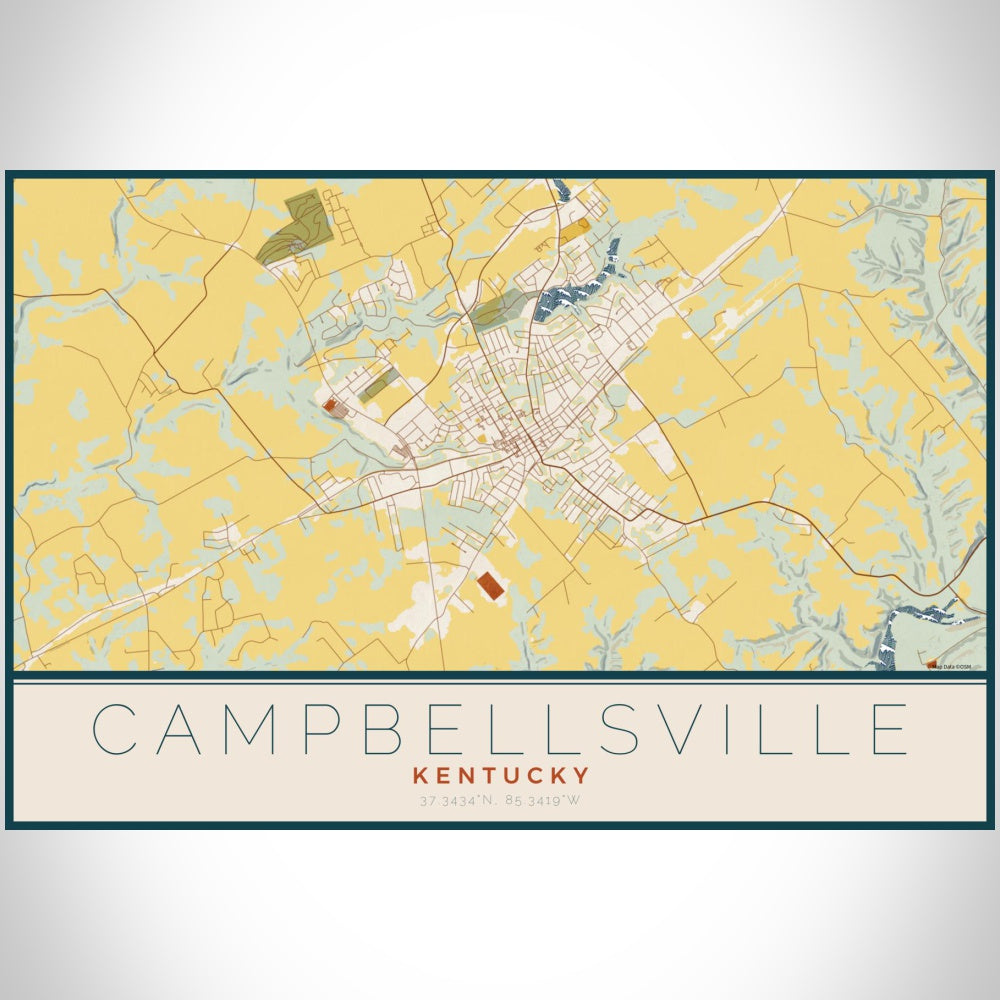 Custom map print of Campbellsville, Kentucky featuring our woodblock style inspired by traditional Japanese woodblock art. Each print is expertly printed on museum quality matte paper. Choose from 3 different sizes in either portrait or landscape orientations.
