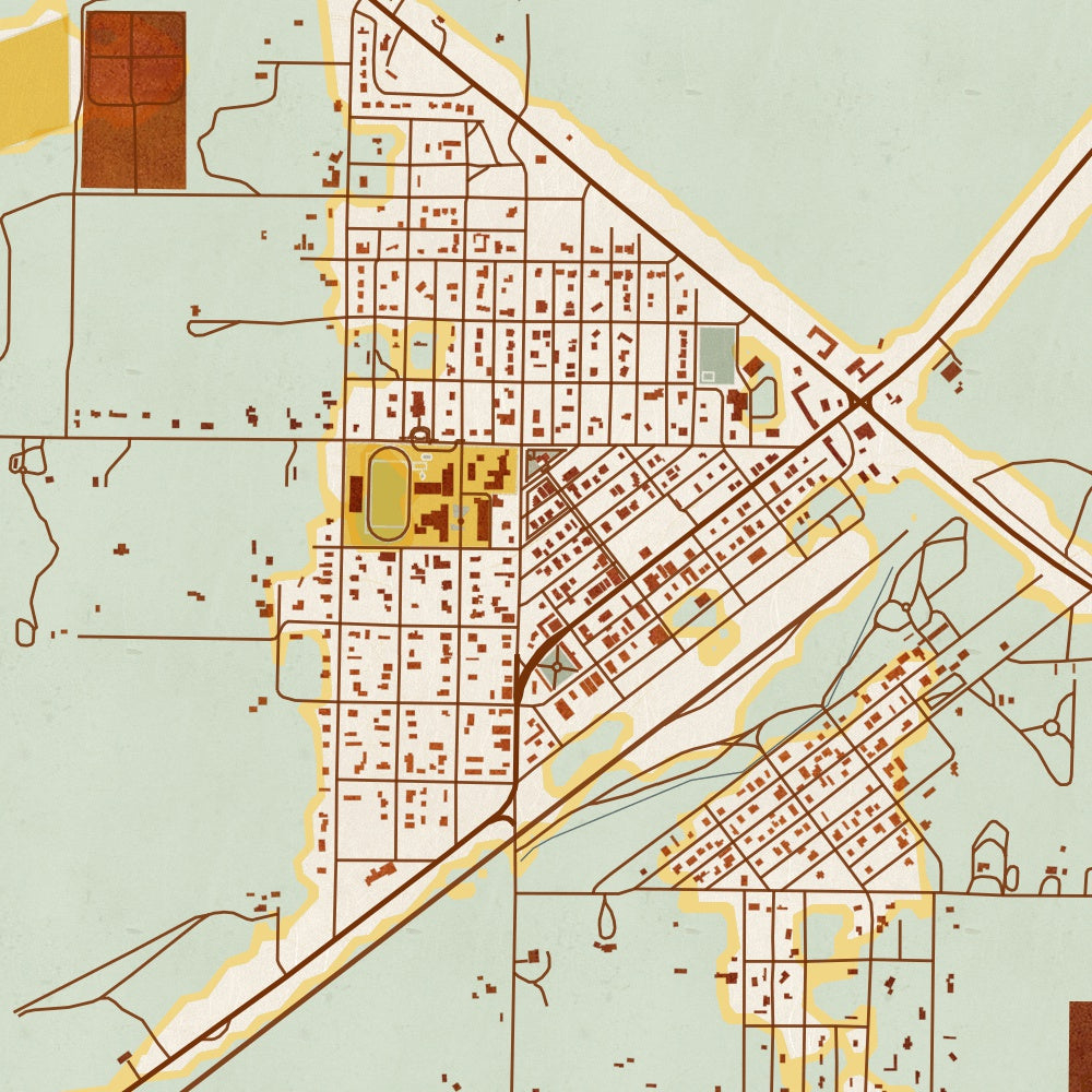 Custom map print of Carrizozo, New Mexico featuring our woodblock style inspired by traditional Japanese woodblock art. Each print is expertly printed on museum quality matte paper. Choose from 3 different sizes in either portrait or landscape orientations.