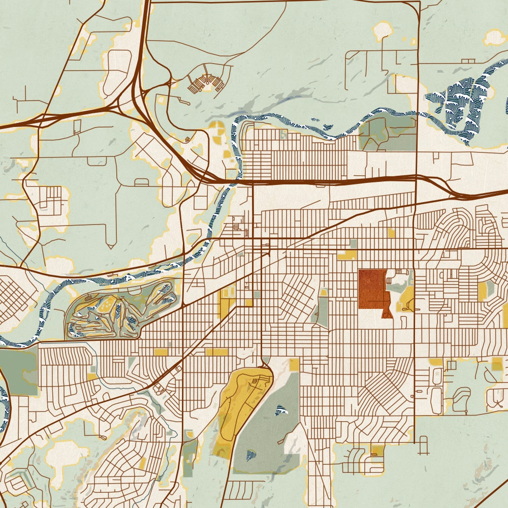 Casper - Wyoming Map Print in Woodblock