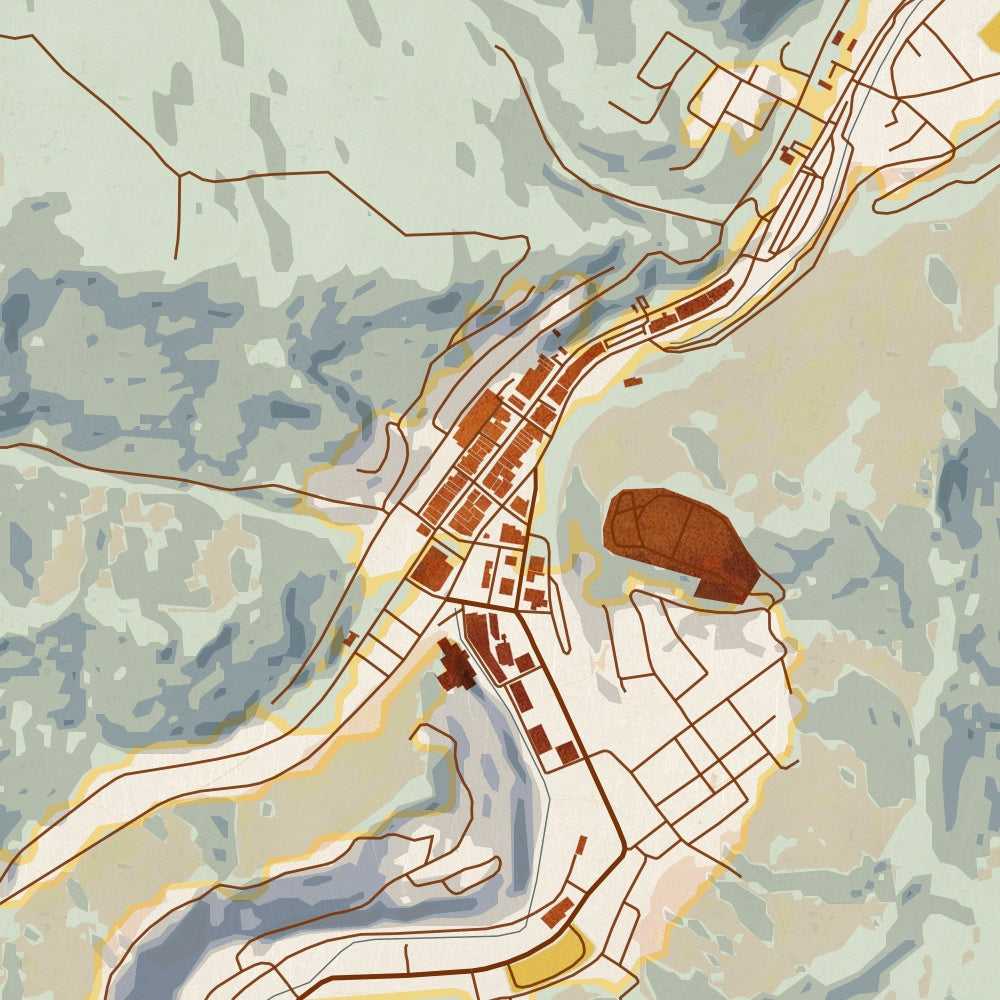 Custom map print of Deadwood, South Dakota featuring our woodblock style inspired by traditional Japanese woodblock art. Each print is expertly printed on museum quality matte paper. Choose from 3 different sizes in either portrait or landscape orientations.