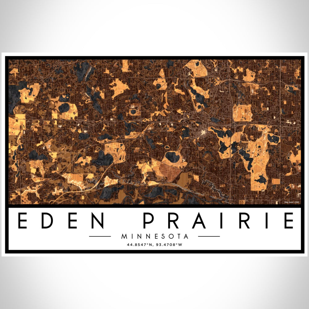 Custom map print of Eden Prairie, Minnesota featuring our ember style inspired by natural wood grains. Each print is expertly printed on museum quality matte paper. Choose from 3 different sizes in either portrait or landscape orientations.