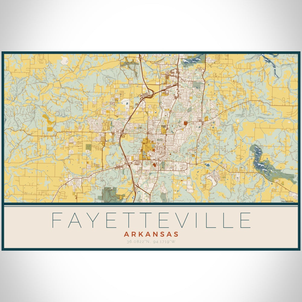 Fayetteville - Arkansas Map Print in Woodblock