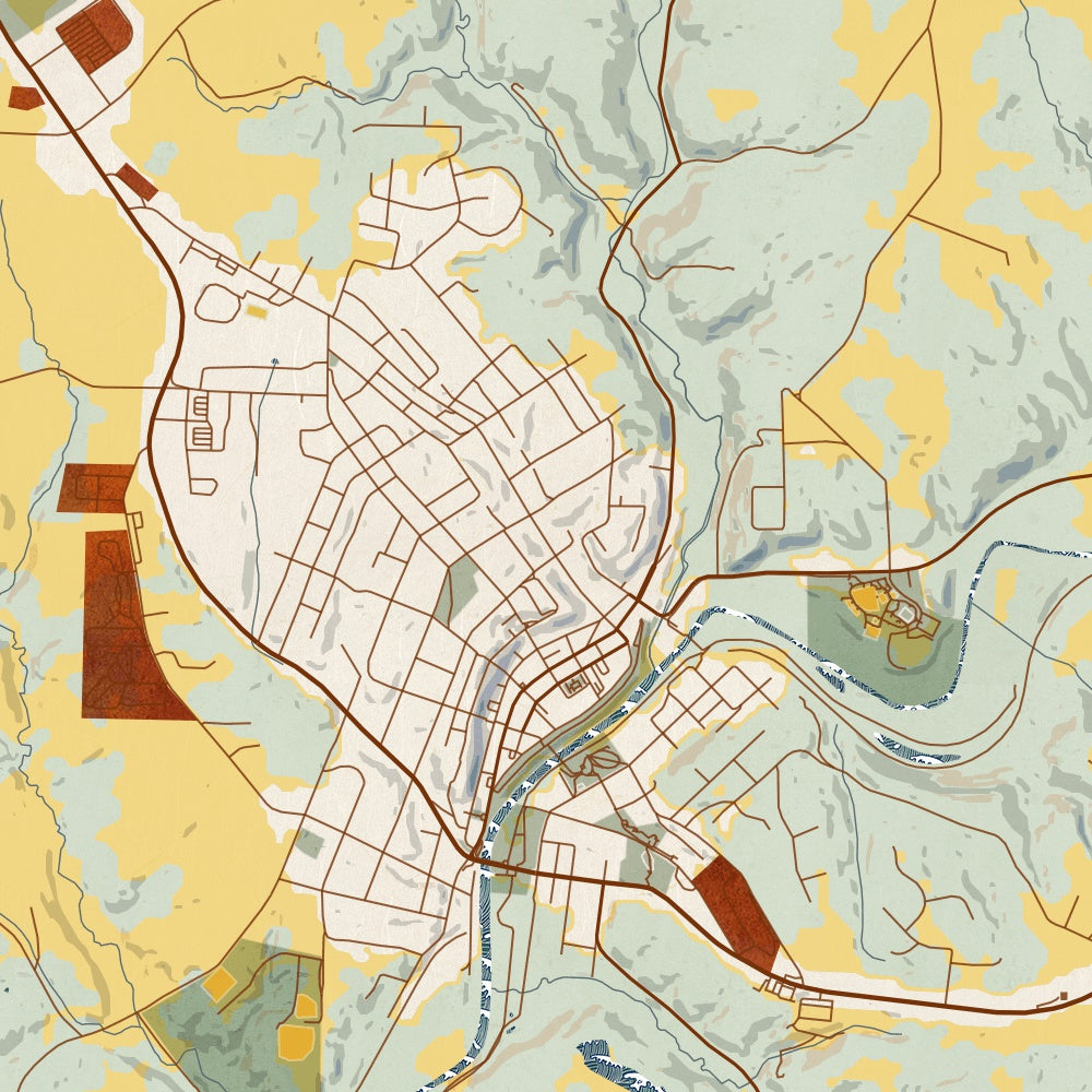 Custom map print of Galena, Illinois featuring our woodblock style inspired by traditional Japanese woodblock art. Each print is expertly printed on museum quality matte paper. Choose from 3 different sizes in either portrait or landscape orientations.