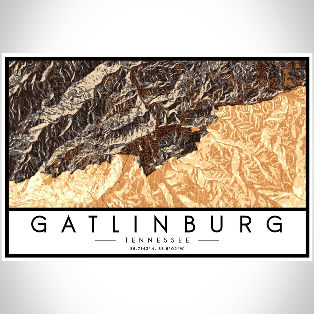 Custom map print of Gatlinburg, Tennessee featuring our ember style inspired by natural wood grains. Each print is expertly printed on museum quality matte paper. Choose from 3 different sizes in either portrait or landscape orientations.