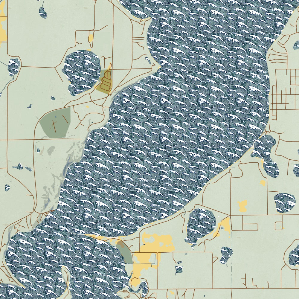 Custom map print of Gull Lake, Minnesota featuring our woodblock style inspired by traditional Japanese woodblock art. Each print is expertly printed on museum quality matte paper. Choose from 3 different sizes in either portrait or landscape orientations.