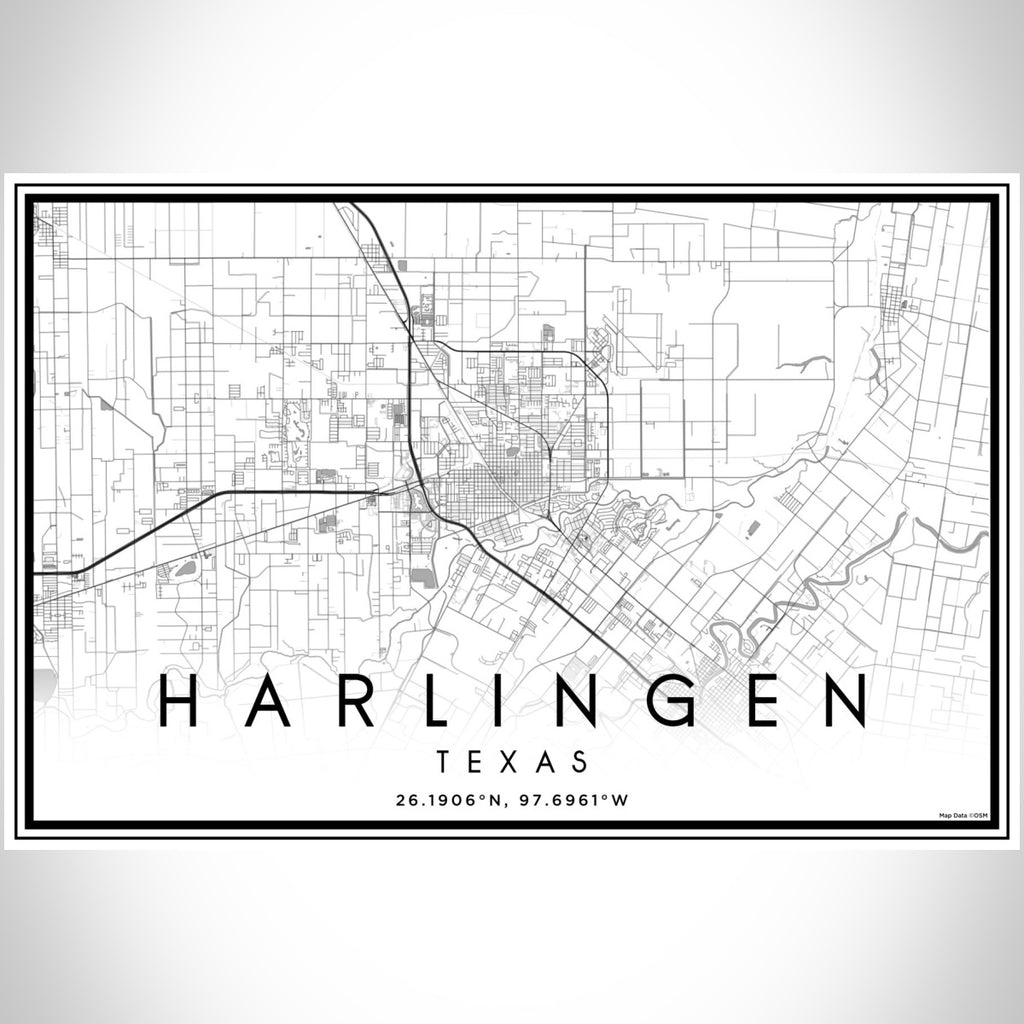 Custom map print of Harlingen, Texas featuring our classic architectural style. Each print is expertly printed on museum quality matte paper. Choose from 3 different sizes in either portrait or landscape orientations.