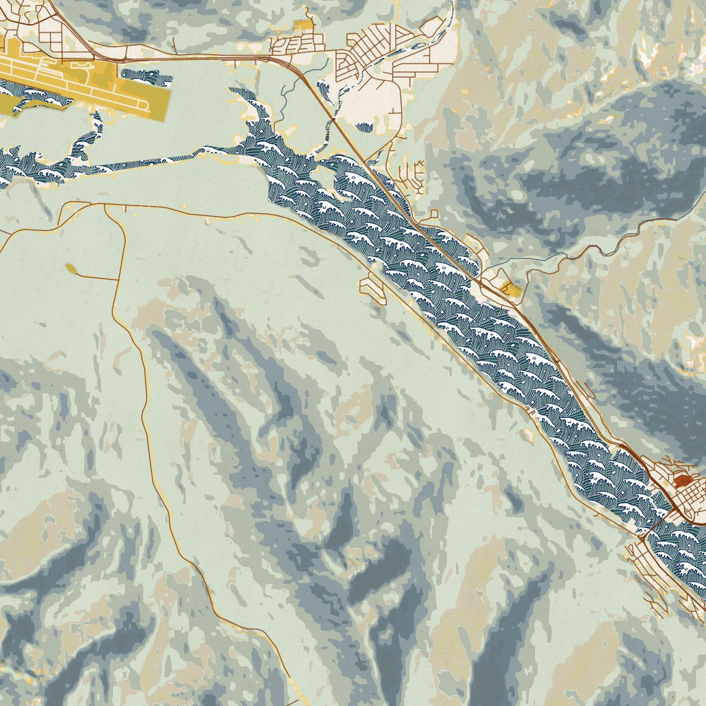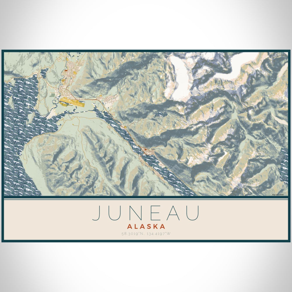 Custom map print of Juneau, Alaska featuring our woodblock style inspired by traditional Japanese woodblock art. Each print is expertly printed on museum quality matte paper. Choose from 3 different sizes in either portrait or landscape orientations.