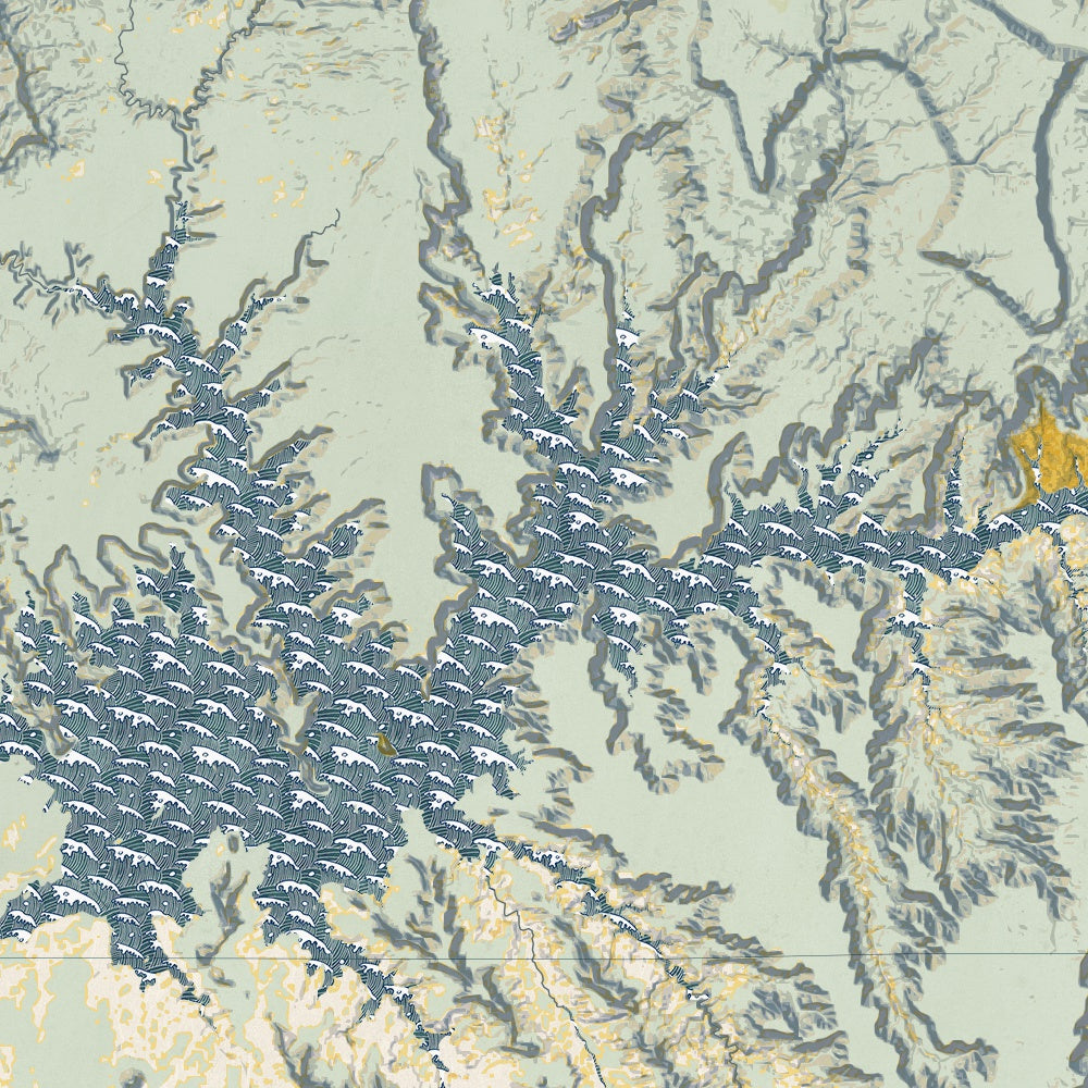 Custom map print of Lake Powell, Utah featuring our woodblock style inspired by traditional Japanese woodblock art. Each print is expertly printed on museum quality matte paper. Choose from 3 different sizes in either portrait or landscape orientations.