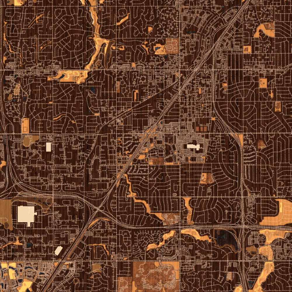 Custom map print of Lenexa, Kansas featuring our ember style inspired by natural wood grains. Each print is expertly printed on museum quality matte paper. Choose from 3 different sizes in either portrait or landscape orientations.