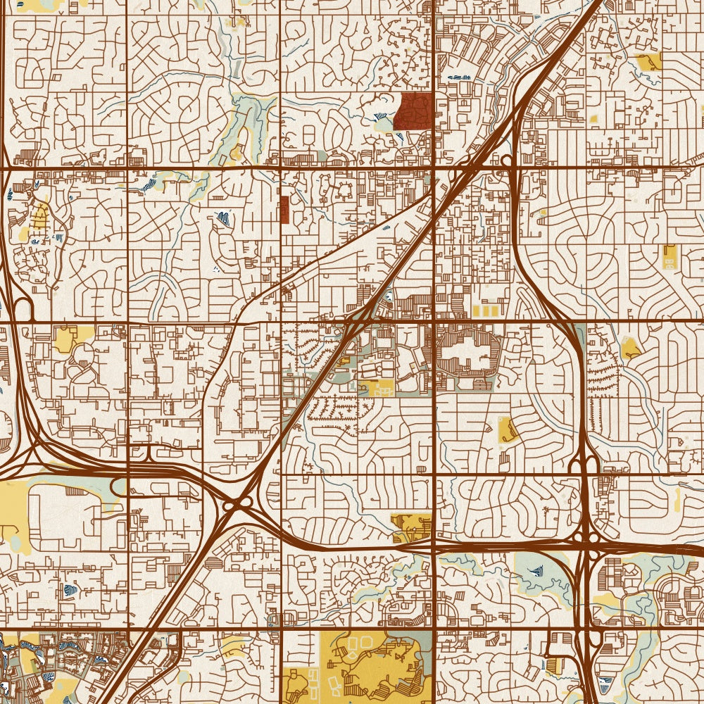 Custom map print of Lenexa, Kansas featuring our woodblock style inspired by traditional Japanese woodblock art. Each print is expertly printed on museum quality matte paper. Choose from 3 different sizes in either portrait or landscape orientations.