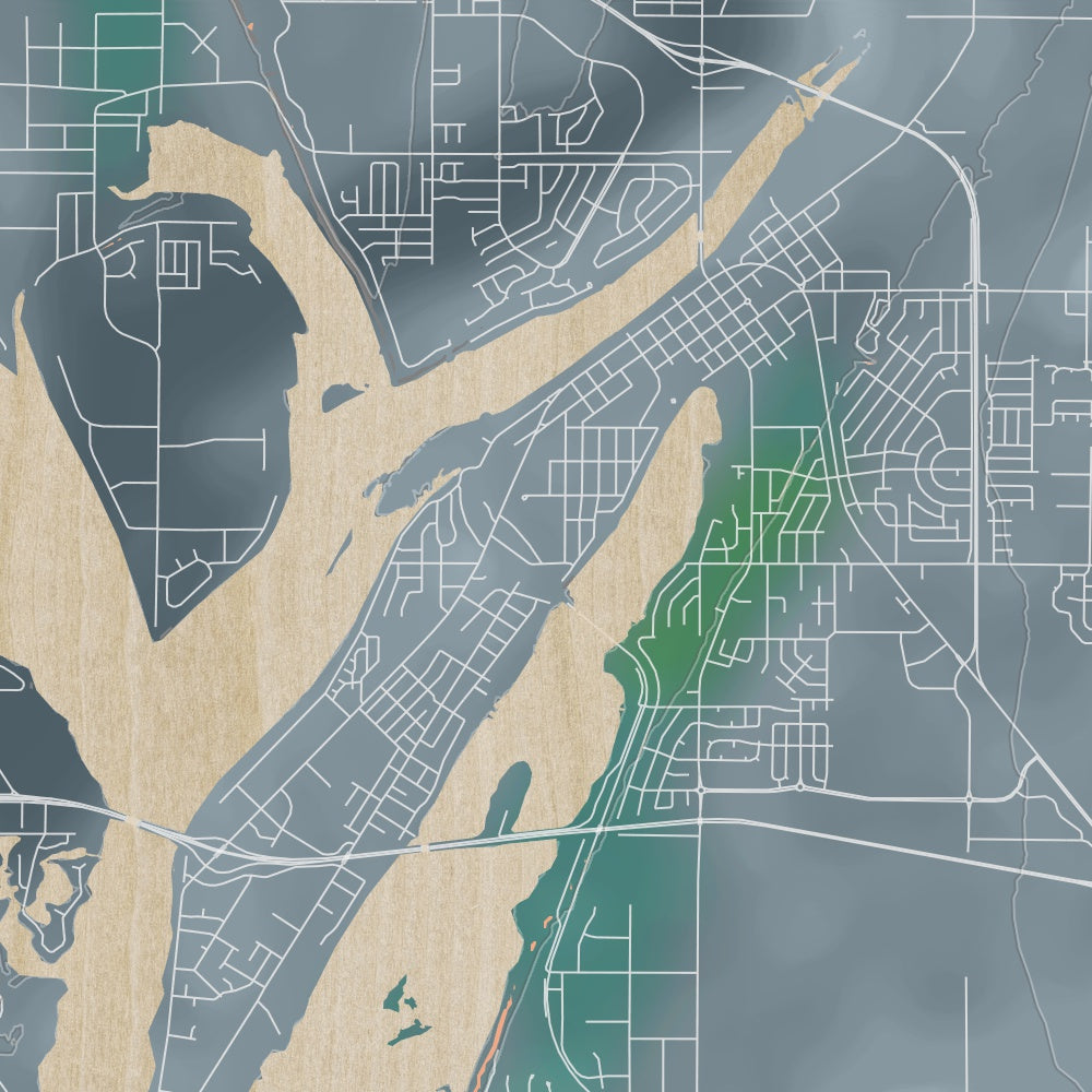 Custom map print of Moses Lake, Washington featuring our unique map style inspired by warm summer afternoons. Each print is expertly printed on museum quality matte paper. Choose from 3 different sizes in either portrait or landscape orientations.