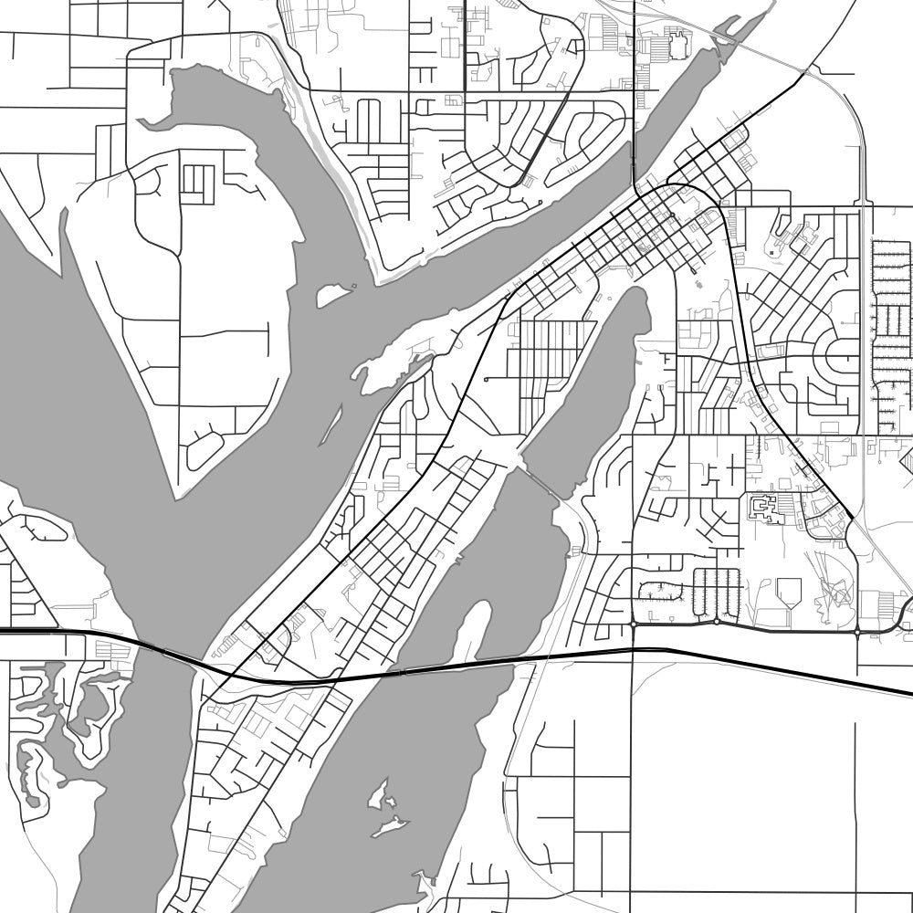 Custom map print of Moses Lake, Washington featuring our classic architectural style. Each print is expertly printed on museum quality matte paper. Choose from 3 different sizes in either portrait or landscape orientations.