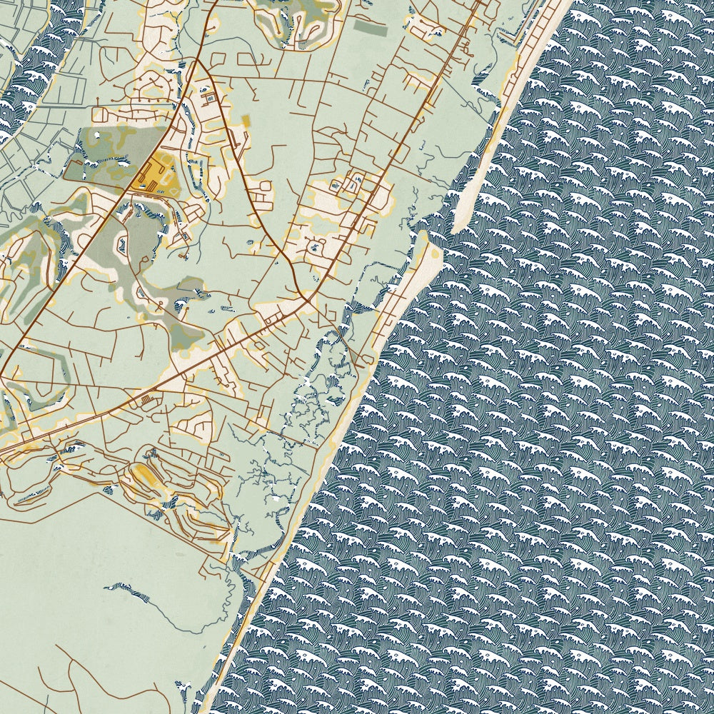 Custom map print of Pawleys Island, South Carolina featuring our woodblock style inspired by traditional Japanese woodblock art. Each print is expertly printed on museum quality matte paper. Choose from 3 different sizes in either portrait or landscape orientations.