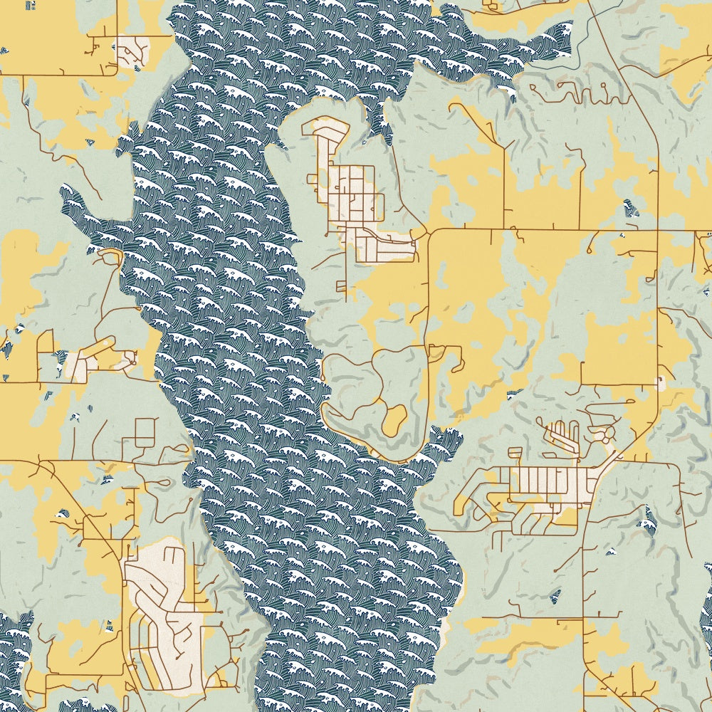 Custom map print of Perry Lake, Kansas featuring our woodblock style inspired by traditional Japanese woodblock art. Each print is expertly printed on museum quality matte paper. Choose from 3 different sizes in either portrait or landscape orientations.
