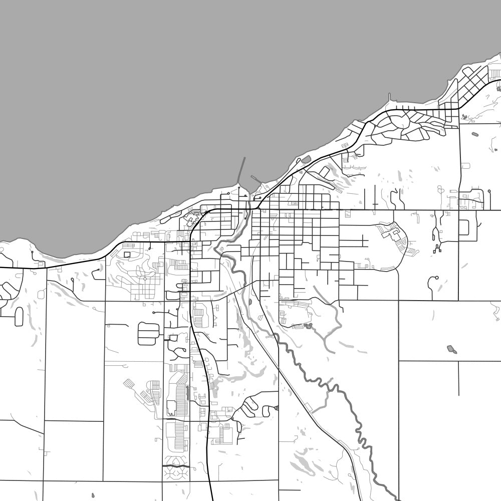 Custom map print of Petoskey, Michigan featuring our classic architectural style. Each print is expertly printed on museum quality matte paper. Choose from 3 different sizes in either portrait or landscape orientations.