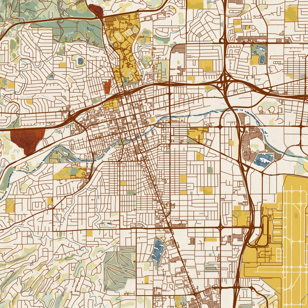 Custom map print of Reno, Nevada featuring our woodblock style inspired by traditional Japanese woodblock art. Each print is expertly printed on museum quality matte paper. Choose from 3 different sizes in either portrait or landscape orientations.