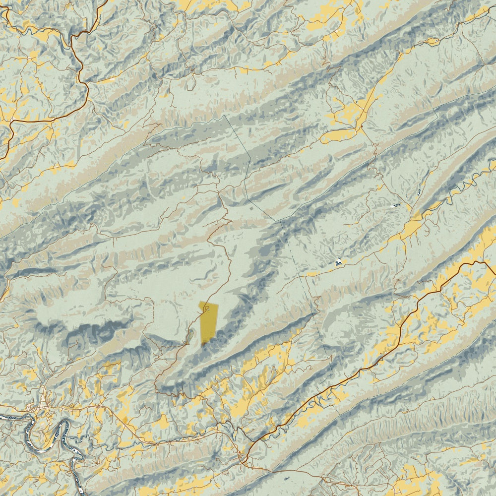 Custom map print of Salt Pond Mountain, Virginia featuring our woodblock style inspired by traditional Japanese woodblock art. Each print is expertly printed on museum quality matte paper. Choose from 3 different sizes in either portrait or landscape orientations.