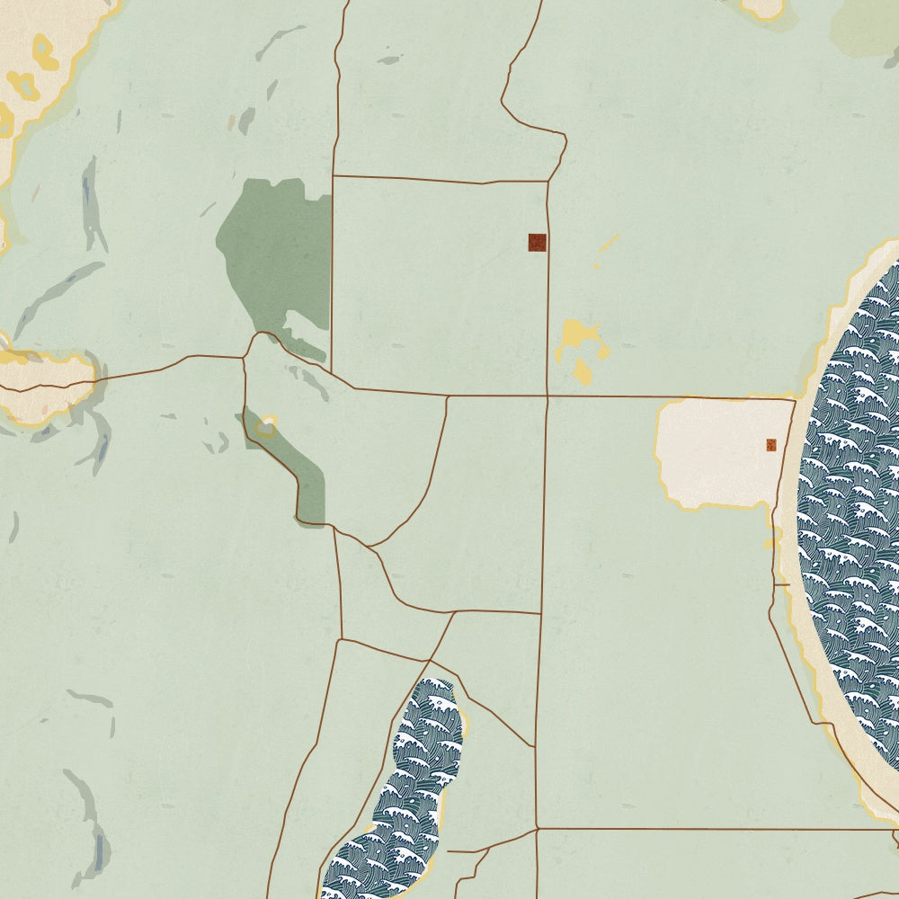 Custom map print of South Manitou Island, Michigan featuring our woodblock style inspired by traditional Japanese woodblock art. Each print is expertly printed on museum quality matte paper. Choose from 3 different sizes in either portrait or landscape orientations.