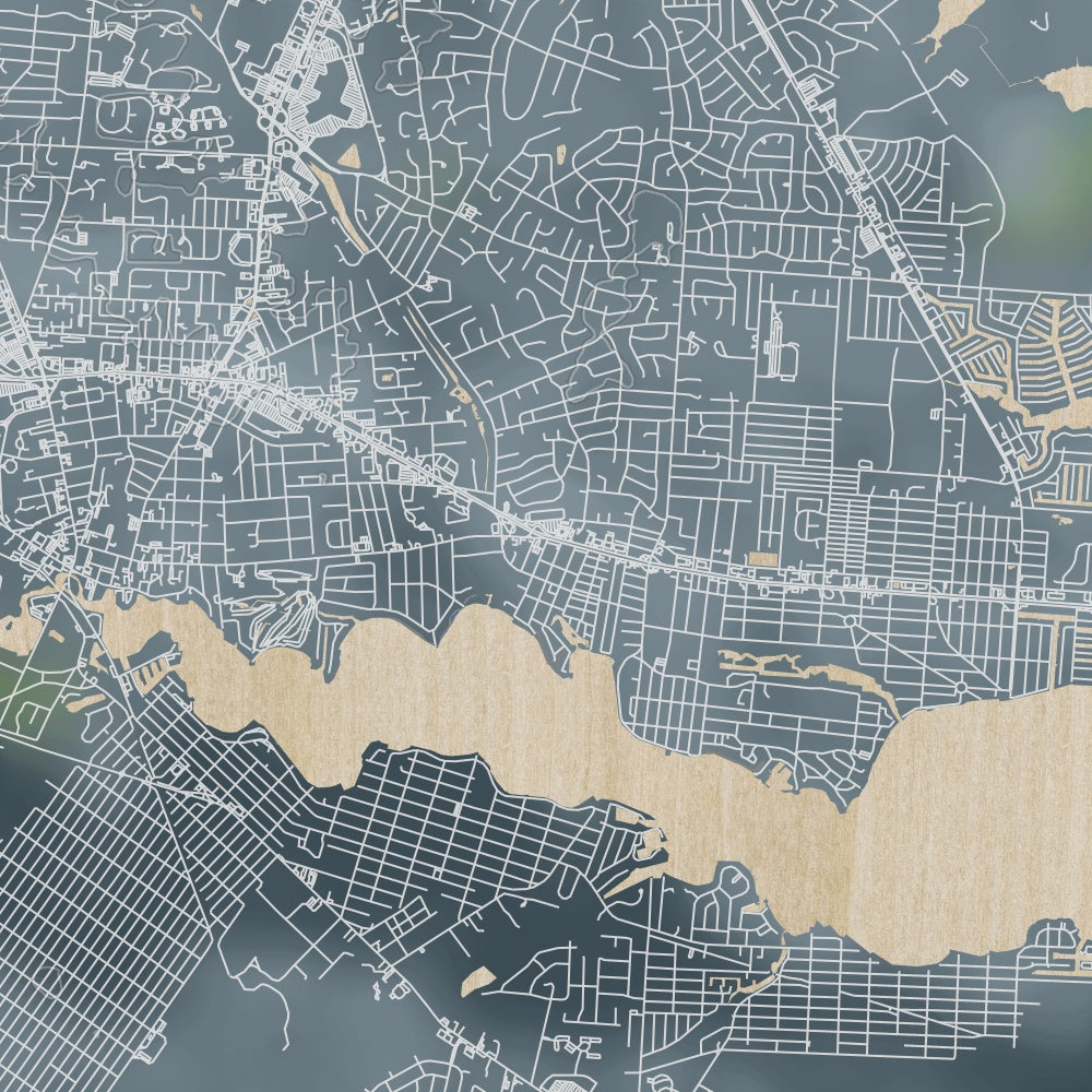 Custom map print of Toms River, New Jersey featuring our unique map style inspired by warm summer afternoons. Each print is expertly printed on museum quality matte paper. Choose from 3 different sizes in either portrait or landscape orientations.