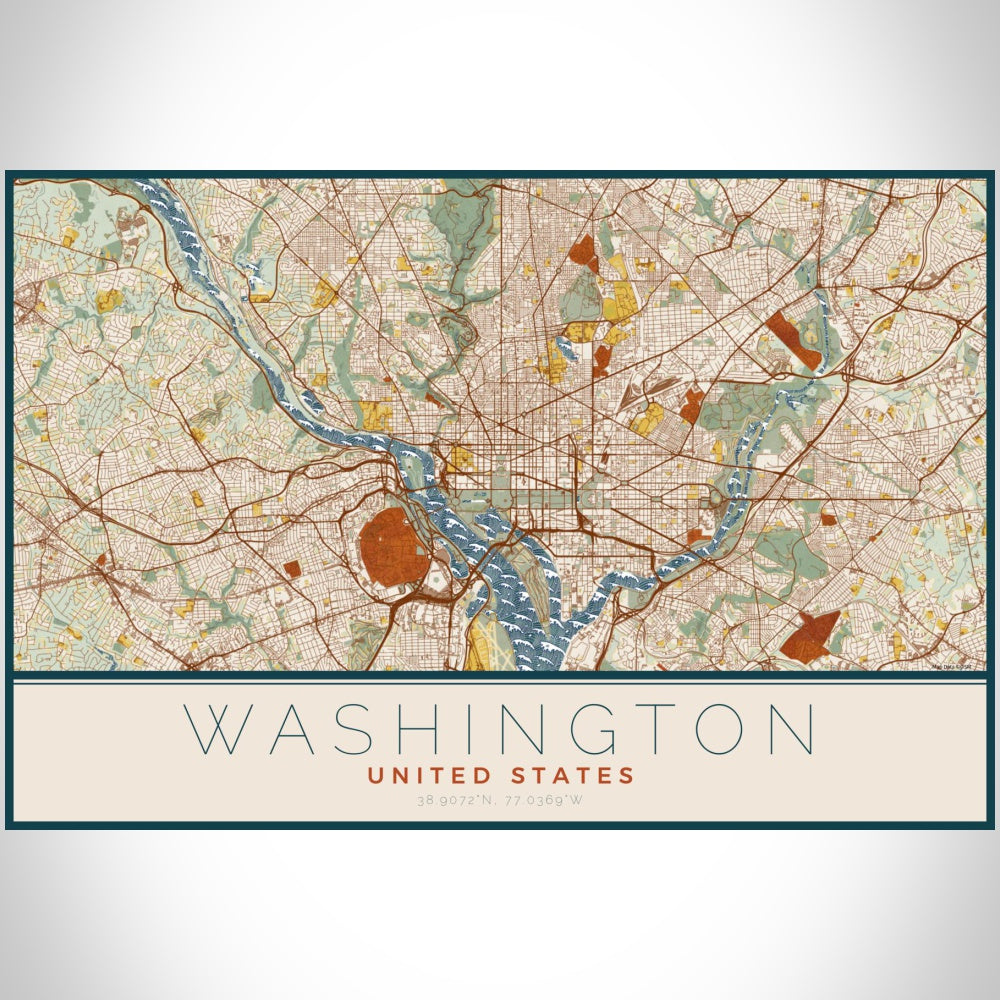 Custom map print of Washington, United States featuring our woodblock style inspired by traditional Japanese woodblock art. Each print is expertly printed on museum quality matte paper. Choose from 3 different sizes in either portrait or landscape orientations.
