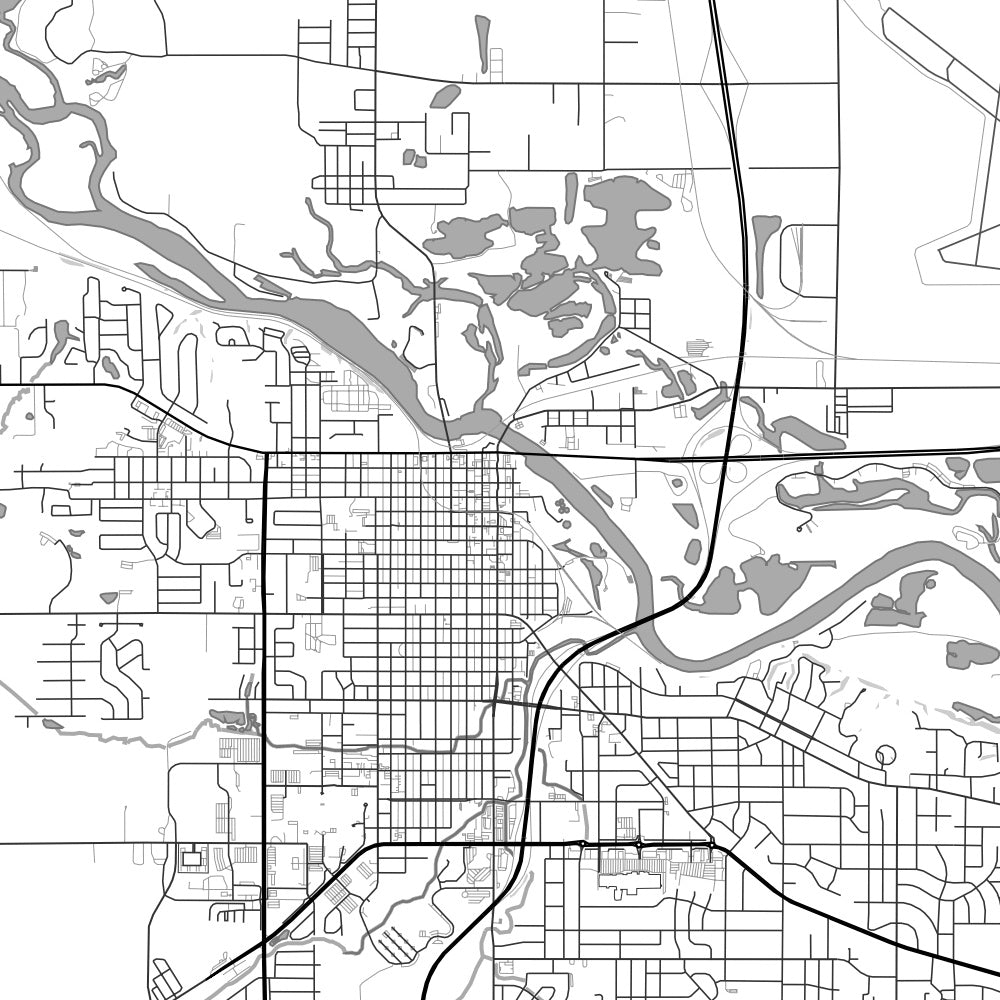 Custom map print of Cedar Falls, Iowa featuring our classic architectural style. Each print is expertly printed on museum quality matte paper. Choose from 3 different sizes in either portrait or landscape orientations.