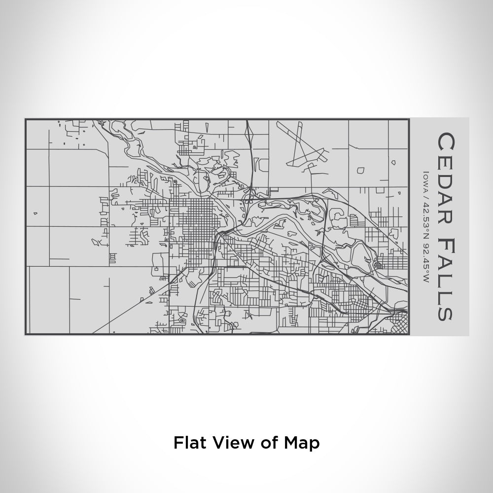 Custom engraved map of Cedar Falls, Iowa and coordinates on 17oz double walled insulated stainless steel bottle. Measurement - 4in x 4in x 11in.