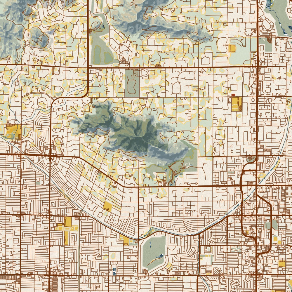 Custom map print of Scottsdale, Arizona featuring our woodblock style inspired by traditional Japanese woodblock art. Each print is expertly printed on museum quality matte paper. Choose from 3 different sizes in either portrait or landscape orientations.