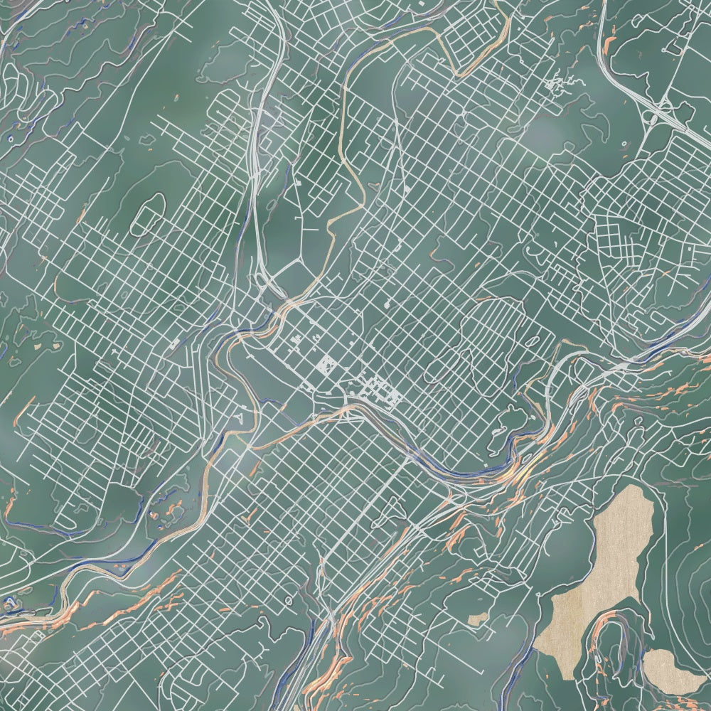 Custom map print of Scranton, Pennsylvania featuring our unique map style inspired by warm summer afternoons. Each print is expertly printed on museum quality matte paper. Choose from 3 different sizes in either portrait or landscape orientations.