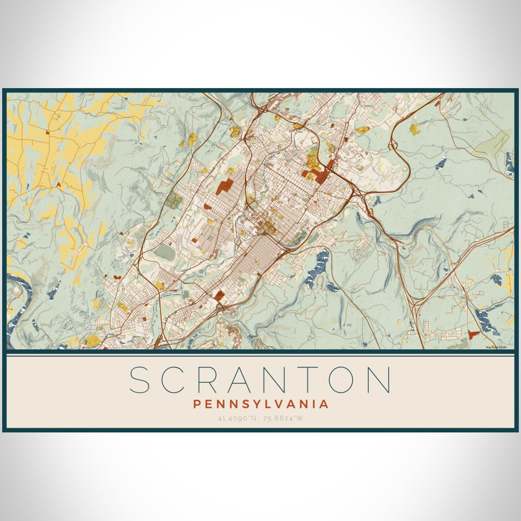 Scranton - Pennsylvania Map Print in Woodblock