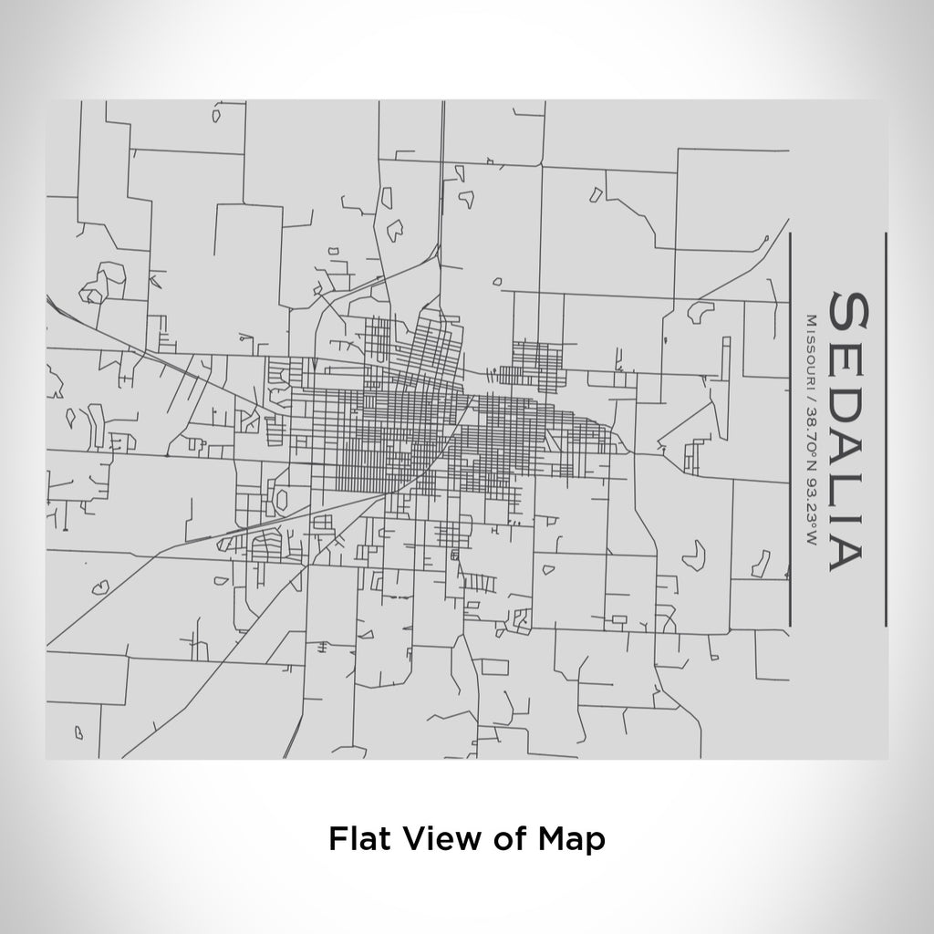 Custom engraved map of Sedalia, Missouri and coordinates on 20oz double walled insulated stainless steel bottle with bamboo top. Measurement - 4in x 4in x 12in.