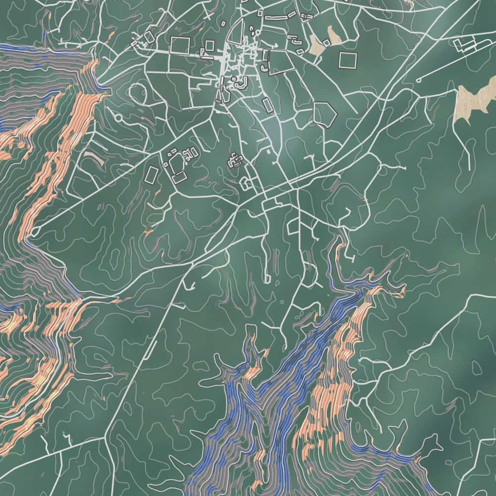 Custom map print of Sewanee, Tennessee featuring our unique map style inspired by warm summer afternoons. Each print is expertly printed on museum quality matte paper. Choose from 3 different sizes in either portrait or landscape orientations.