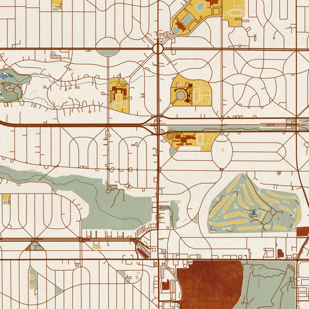 Custom map print of Shaker Heights, Ohio featuring our woodblock style inspired by traditional Japanese woodblock art. Each print is expertly printed on museum quality matte paper. Choose from 3 different sizes in either portrait or landscape orientations.