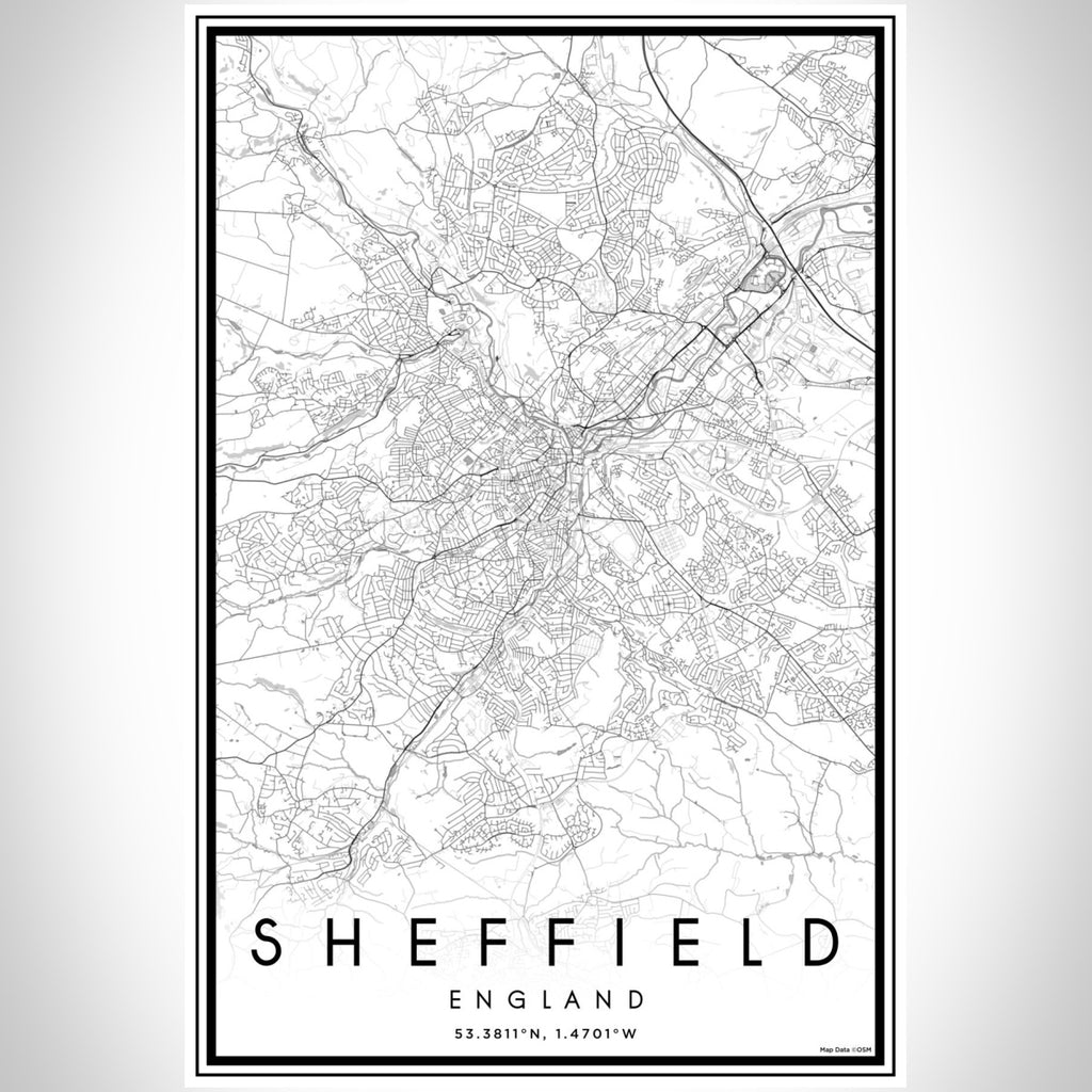 Custom map print of Sheffield, England featuring our classic architectural style. Each print is expertly printed on museum quality matte paper. Choose from 3 different sizes in either portrait or landscape orientations.